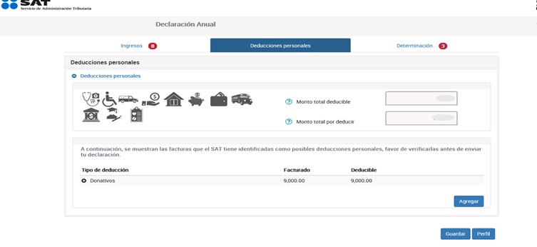 Y ya que se haya agregado la información que se solicita con respecto a la actividad empresarial,  y como se trata de la declaración anual, entonces podremos tomar en cuenta los que son las deducciones personales, las cuales se agregaran en el siguiente apartado: