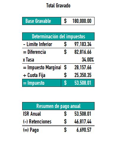 ISR por pagar. Finalmente, en este punto quiero hacer énfasis, ya que, si bien la empresa A y la empresa B pagan tu ISR, existe el inconveniente de que al final del año tú también deberás pagar un ISR, ¿y por qué? La respuesta es sencilla, porque tienes una base gravable distinta a las que te pagan.