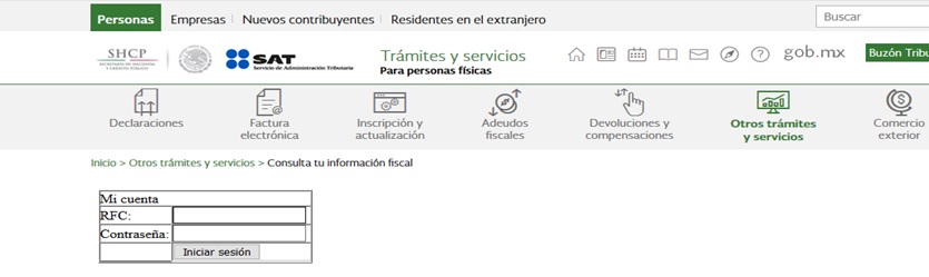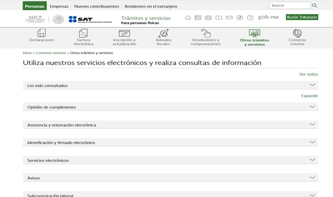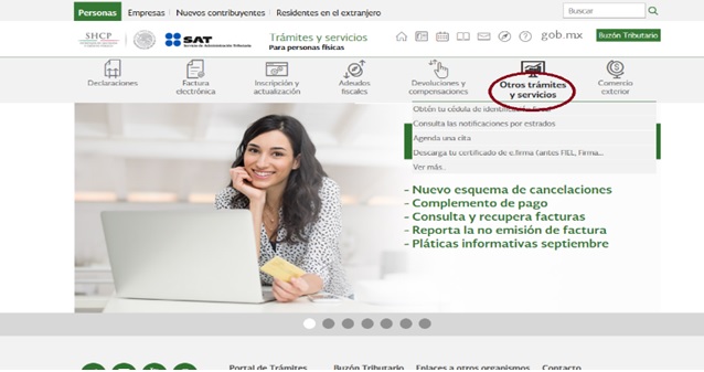 Entramos a la página de internet del SAT y ubicamos la opción de “Otros trámites y servicios”