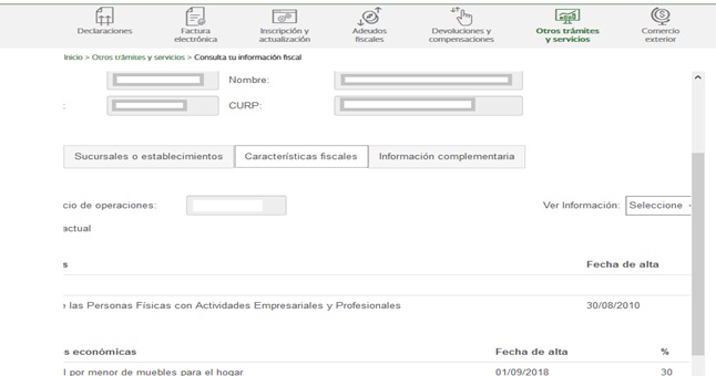 - Las obligaciones por cada régimen fiscal, a los que pertenece o a los que pertenecía, así como también fechas de Alta y Baja, si fuera el caso