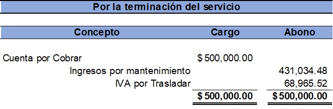 Supongamos que una entidad celebra un contrato con un cliente para el mantenimiento de su maquinaría, el cual los datos del contrato son: