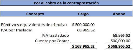 Se llega el día 01 de octubre y el cliente paga a través de una transferencia electrónica de fondos (SPEI) la cantidad pactada en el contrato de prestación de servicios por $ 500,000.00 IVA incluido. Por ende, la entidad fiscalmente está obligada a emitir el famoso complemento de pago.
