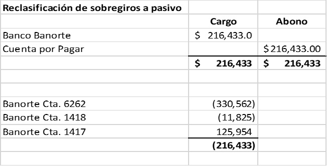 Cuando no se tengan convenios de compensación con las instituciones que integran el sistema financiero, los sobregiros deben mostrarse como un pasivo a corto plazo, aun cuando se mantengan otras cuentas de cheques en la misma institución.