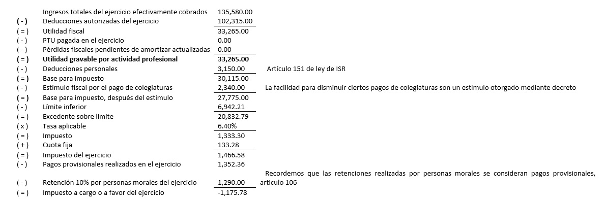 En este caso, solo se hizo referencia a los ingresos obtenidos por actividad profesional, pero se debe tener presente que cuando se perciben otro tipo de ingresos, en la declaración anual deben acumularse, siempre en términos de la ley de ISR.