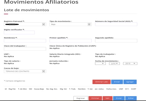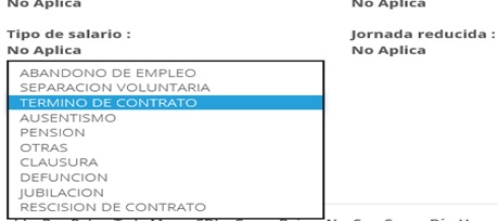Como se observa, nos solicitará desde el registro patronal hasta la causa de la baja, la cual elegiremos de las opciones que se proporcionan según sea el caso: