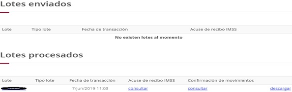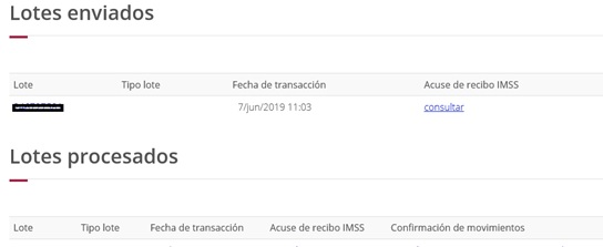 6.- Y una vez validado el trámite, el sistema nos regresará un acuse de recibo; sin embargo, debemos posteriormente regresar a dicho sistema para verificar que el lote ha sido procesado, y por ende, aceptado nuestro movimiento: