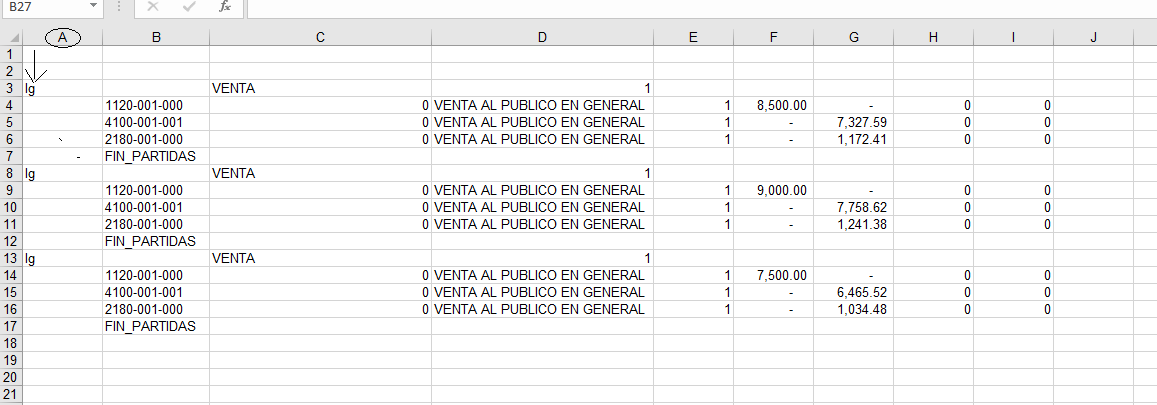 Siempre que se comienza a diseñar este archivo, el primer dato es en A3, ya que toma como base el prediseño de las pólizas contables del sistema, para nuestro caso, refiriéndonos al sistema Aspel COI, que es uno de los más utilizados;