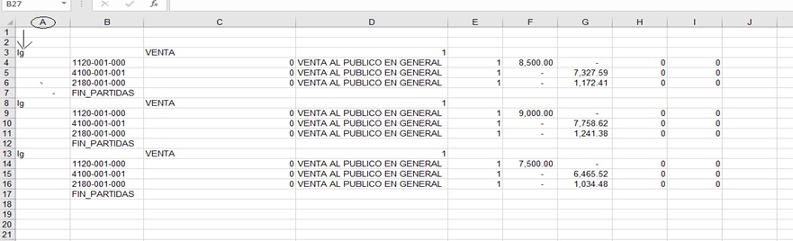 Si para nuestras pólizas solo se agregaran los datos de un comprobante fiscal, como se expone líneas antes, entonces un ejemplo de Layout a utilizar sería el siguiente: