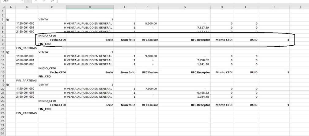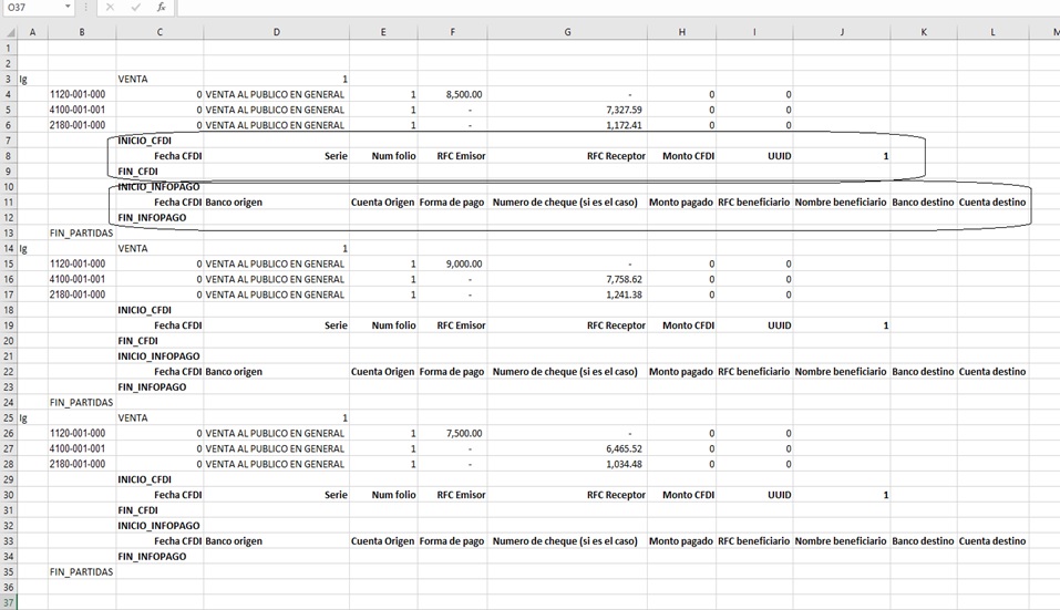 Una vez que hemos destacado qué es y para qué sirve un Layout para importar pólizas de forma masiva, así como los datos básicos para generarlas, es importante señalar otros datos que deben incorporarse a dicho archivo, con el cual podrán generarse las pólizas, pero, con los principales datos de un CFDI.