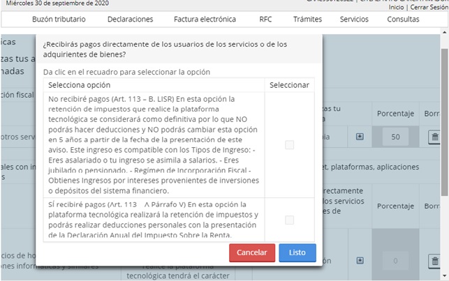 Cómo actualizar actividades de plataformas digitales en el SAT