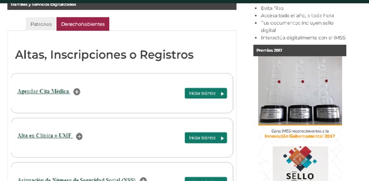 3. Ubicar los apartados para Altas, Inscripciones o Registros, para derechohabientes.