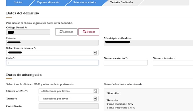 6. Cuando haya localizado el codigo postal y ubicado el estado y municipio que le sea asignado, bastará con agregar los datos de la dirección para localizar la clinica correspondiente, o en su caso, la mas cercana.